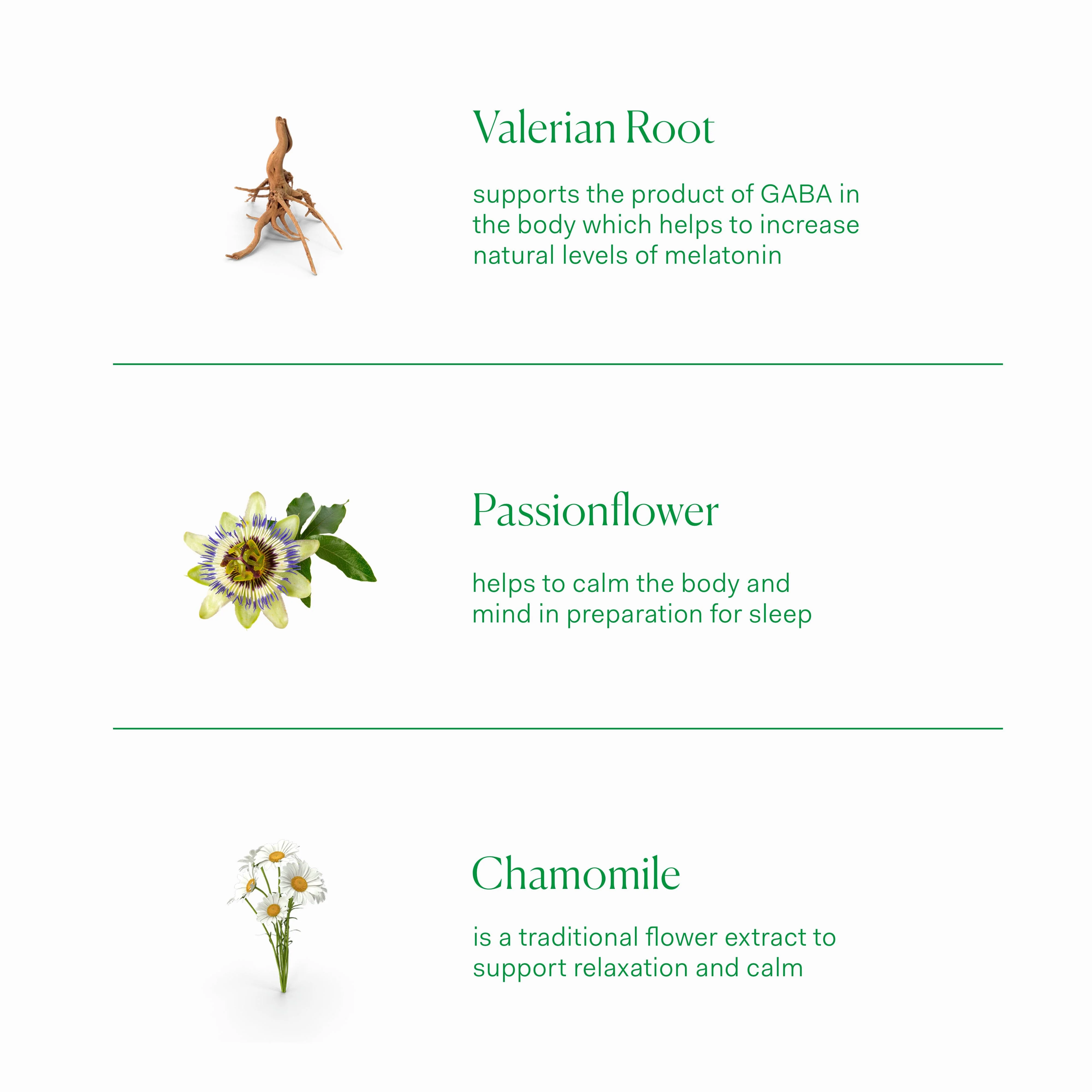 Struggle with a “busy brain” before bed? You’re not alone. A third of the global population has trouble sleeping - some are unable to fall asleep, while others struggle to stay asleep. SLEEP DROPS is formulated with passionflower, chamomile and valerian root extracts, classed as “nervines” to help you drift off with ease. These botanical and herbal extracts have a mildly sedative effect on the nervous system, so you can settle into a deep, restorative sleep.